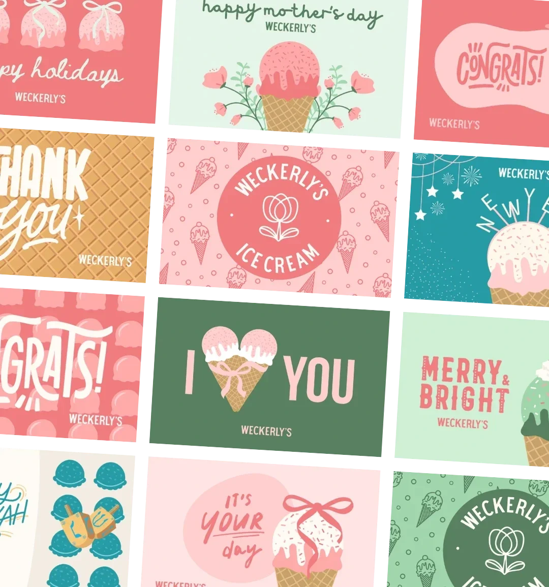 Give the gift of ice cream Weckerly’s digital gift cards are a sweet way to share ice cream, redeemable at all our scoop shops. Buy A Gift Card
